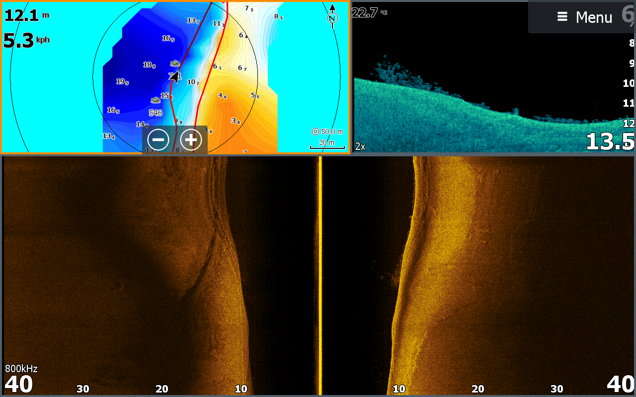 Когда пришли за щукой она уже нас ждала.Увидели хороший силуэт в эхолоте .Я кидаю keitech fat 7,8 и на первом же забросе подсекаю крупную щуку,но она сошла.Настроение сразу упало,но продолжили поиск.Практически сразу Влад находит щуку и кидает ей мышь.Щука с жадностью накинулась на мышь и спустя несколько минут оказалась в лодке на фотосессии.