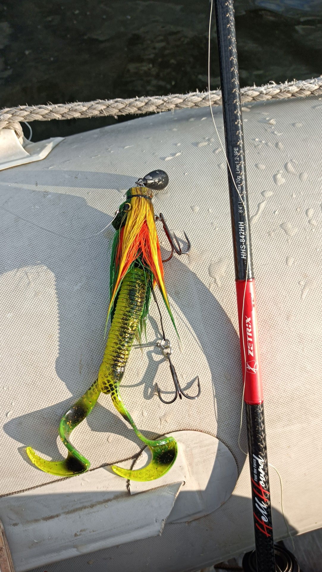 Многие думают что для ловли на мыши нужен специальный комплект.Но на некрупные мыши можно ловить и обычным джиговым комплектом.Я ставлю на Хелхаунд до 70 гр. мелкую мышь 40 гр и ловлю щуку на 6 кг.