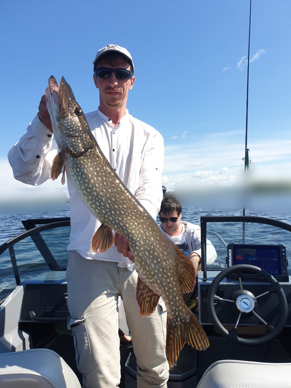 Ну и примерно в обед Влад поймал на #Frapp фанкишад 6,9 щуку примерно 4,5-5 кг.