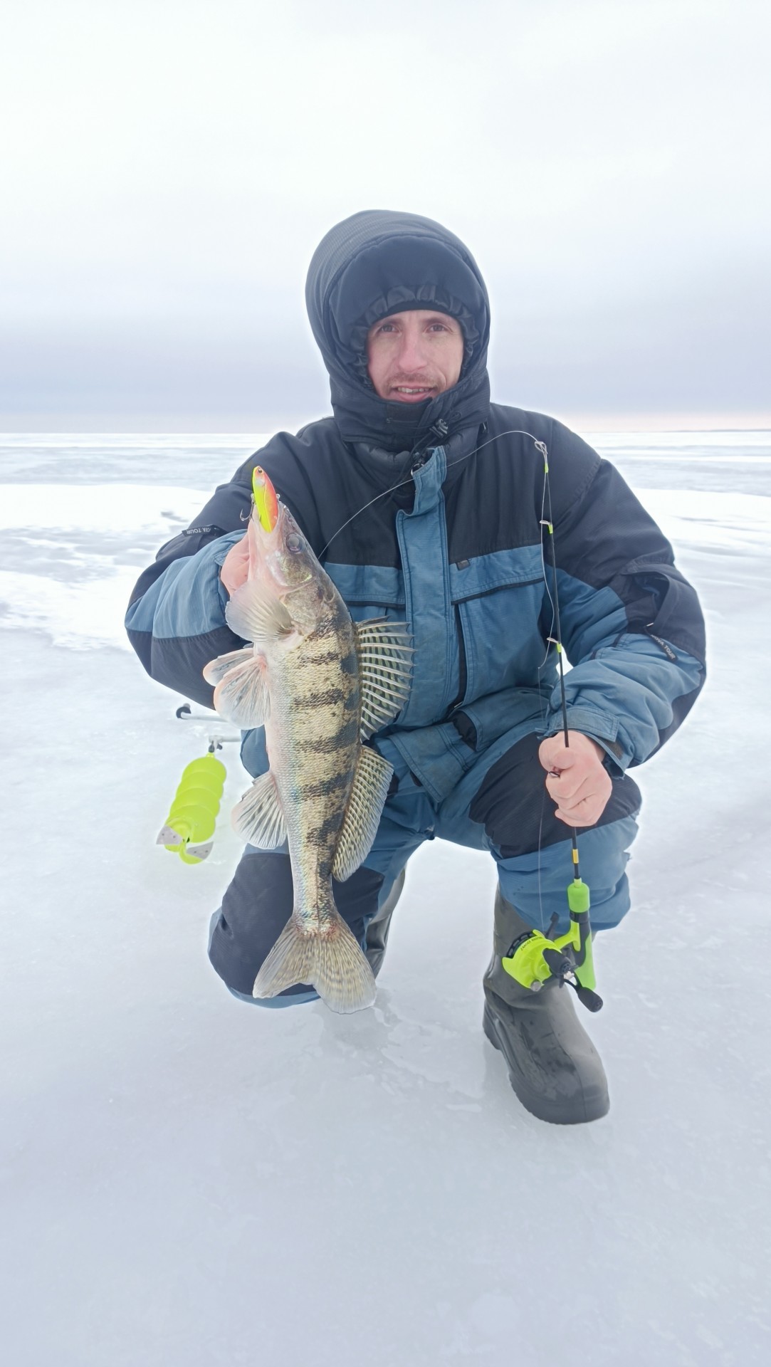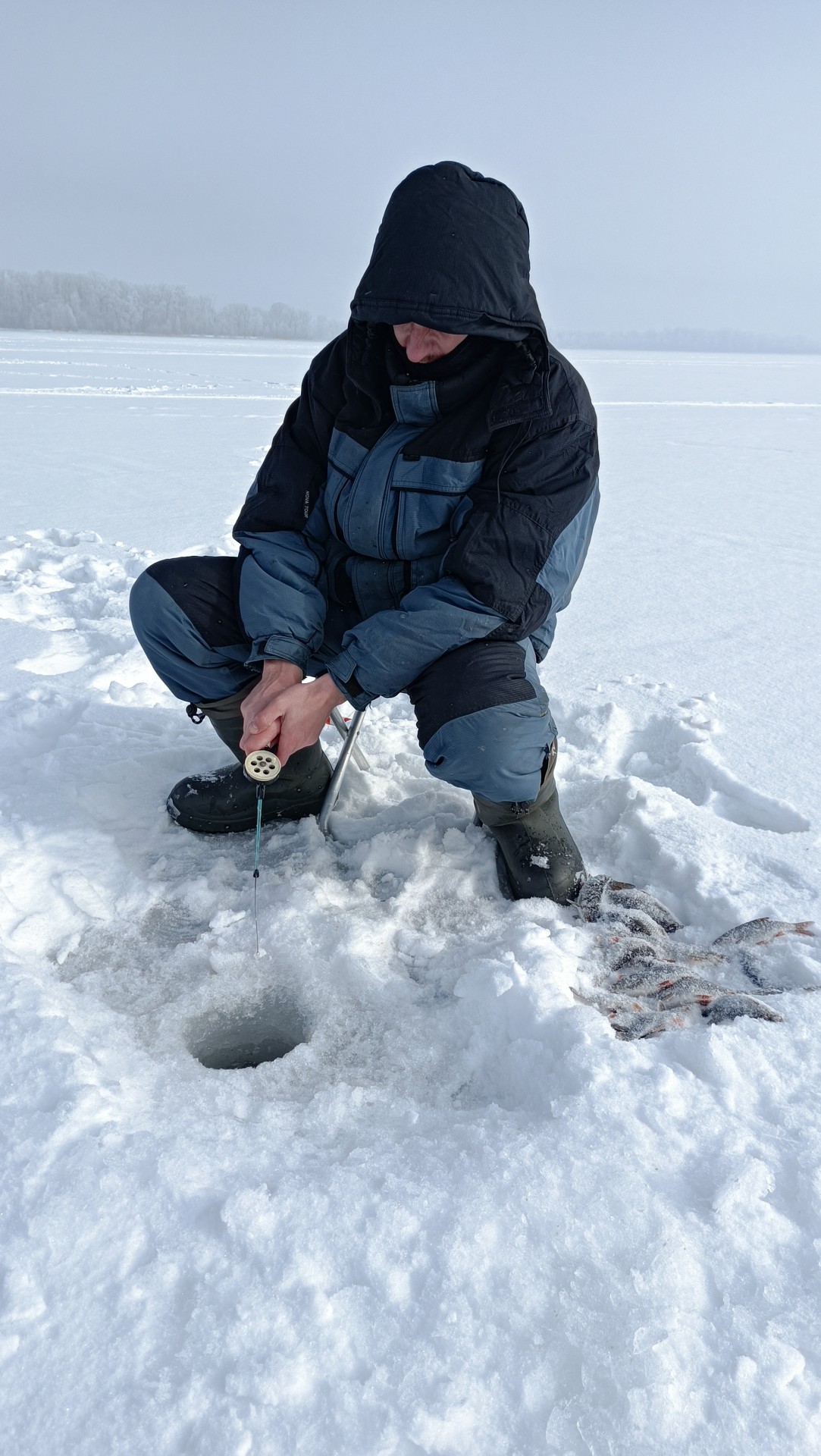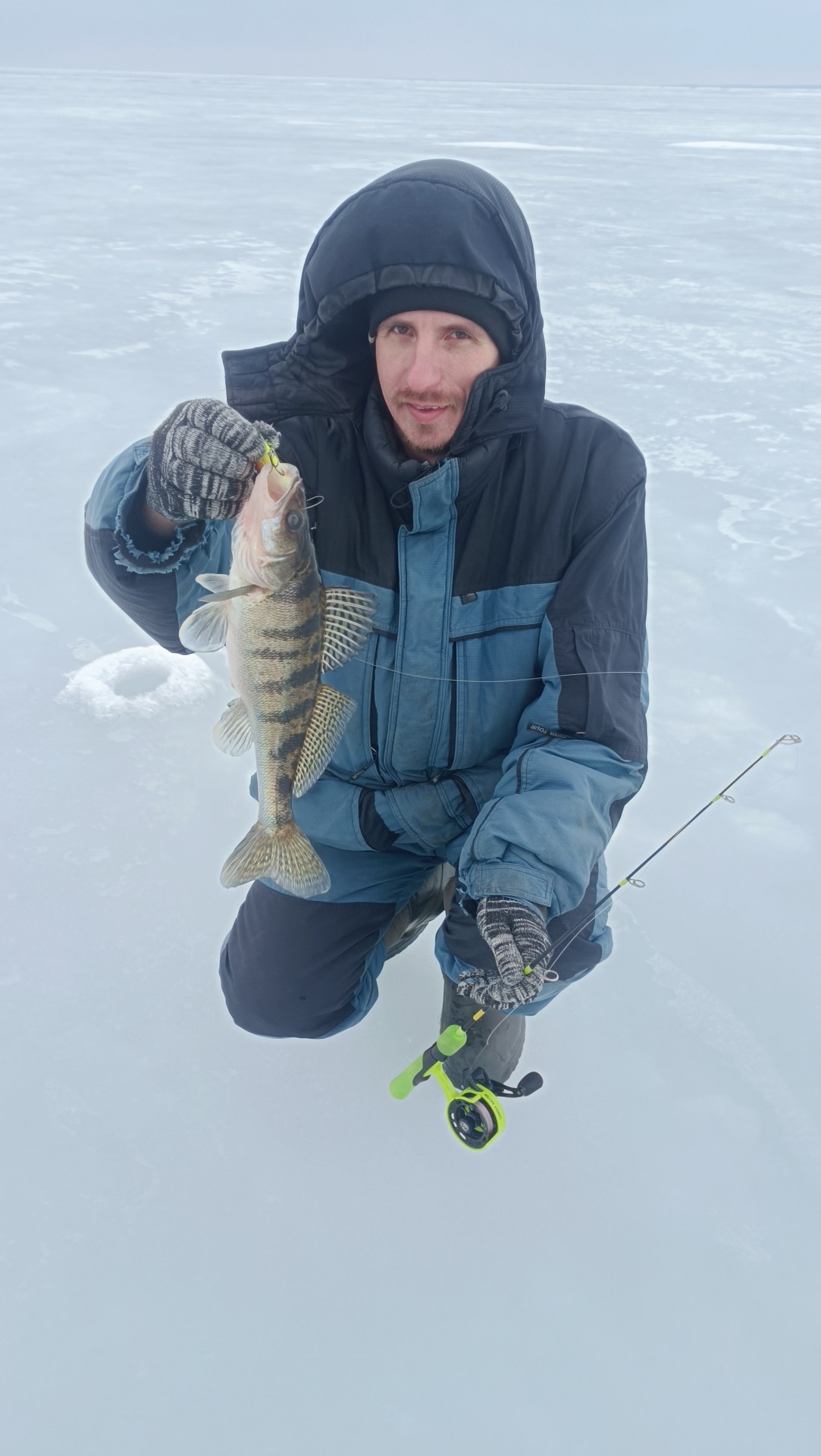 Потом сместился и дело пошло потихоньку. Окунь одиночный, не стайный. Слил 6-7закилошников прямо возле лунки. Двух все же взял. В прилове пару жерехов и судачек. Длилось это около часа потом затишье.