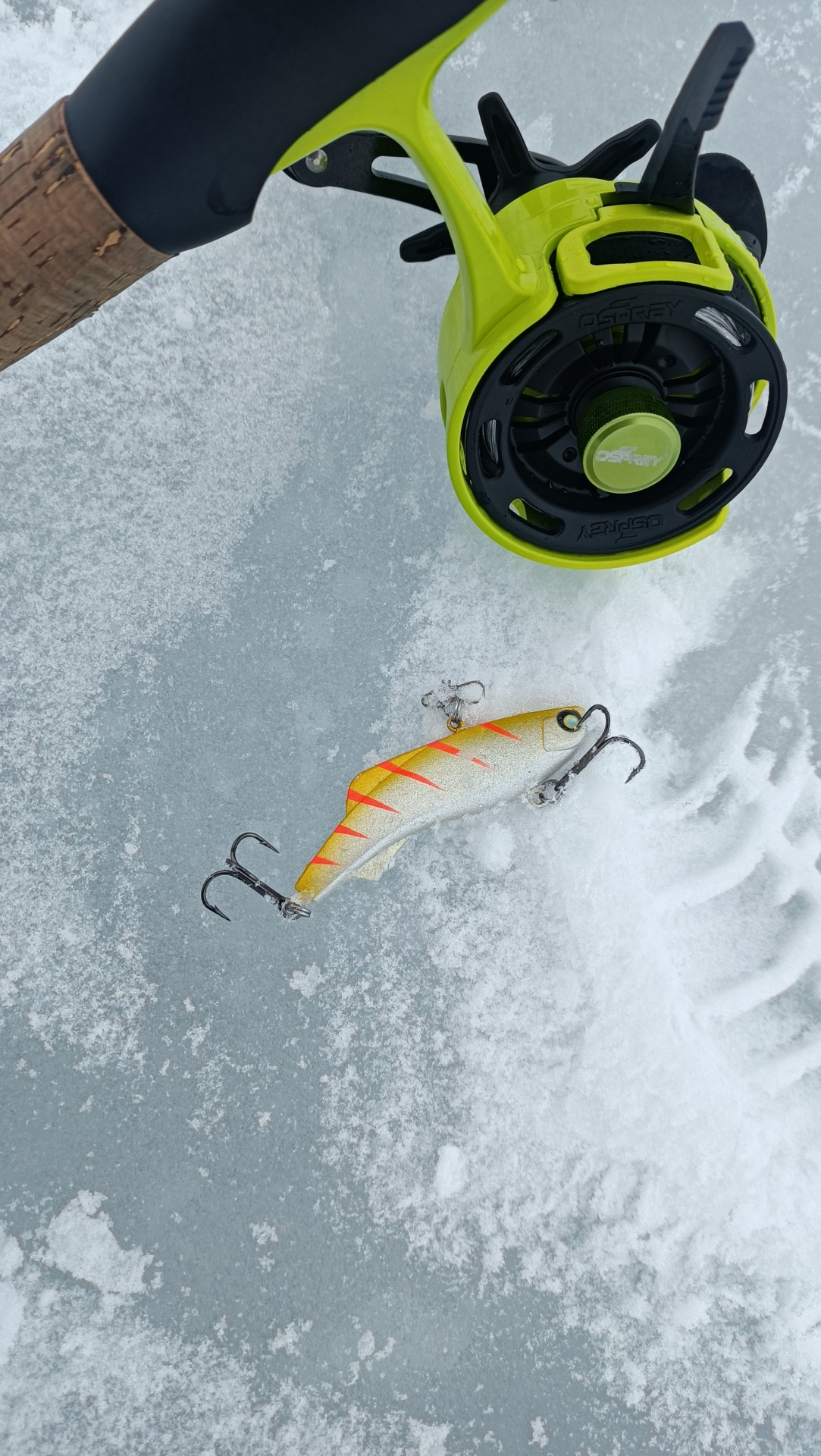 А вот к жерлицам щука периодически подходила, были и холостые выстрелы и срез флюра у меня, ну и домой всё таки поехали не пустые.