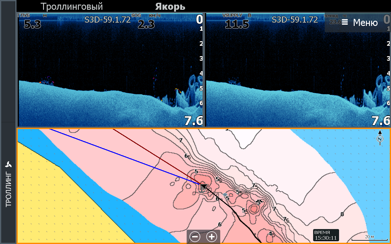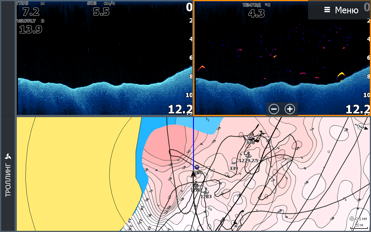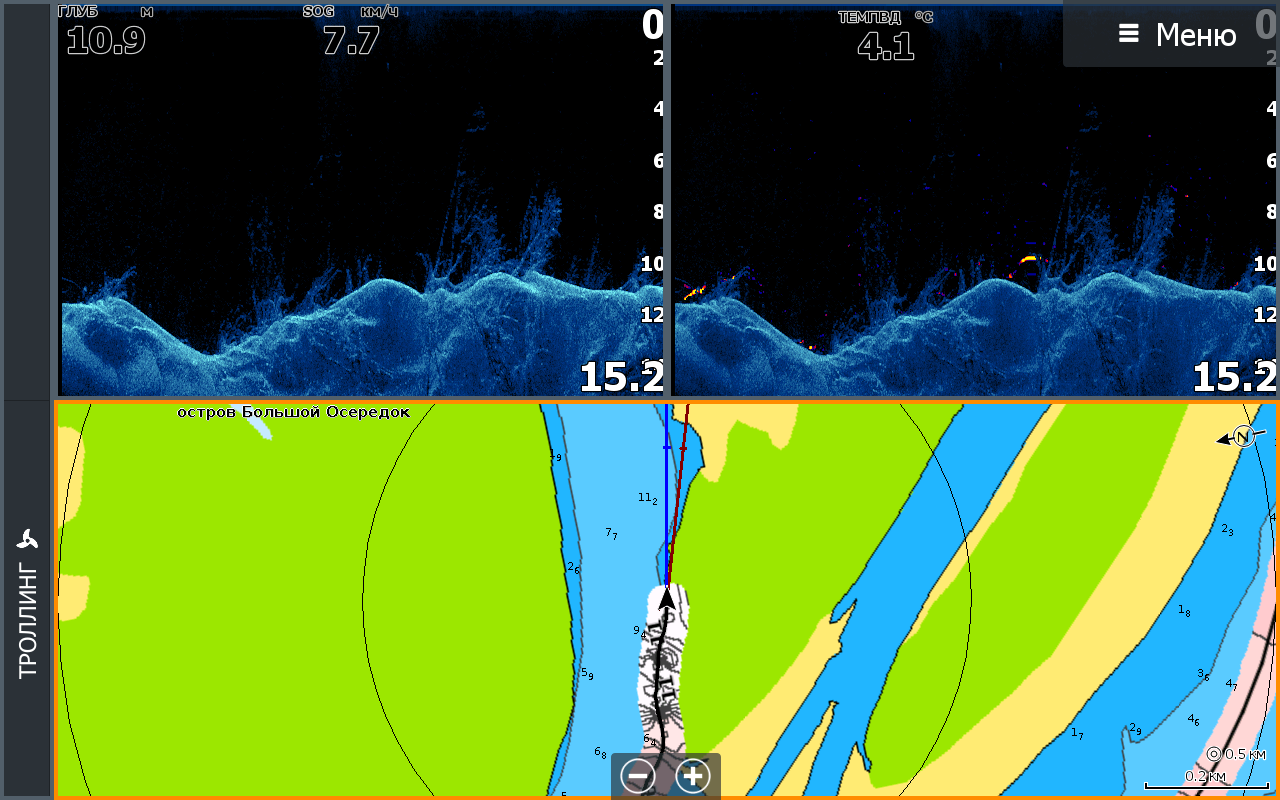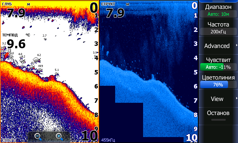 Хард сброс не помог. Глюг с глубиной стал проявляться на каждой рыбалке. Боковик работает адекватно, нижний и стандартный сонар показывает 200 метров