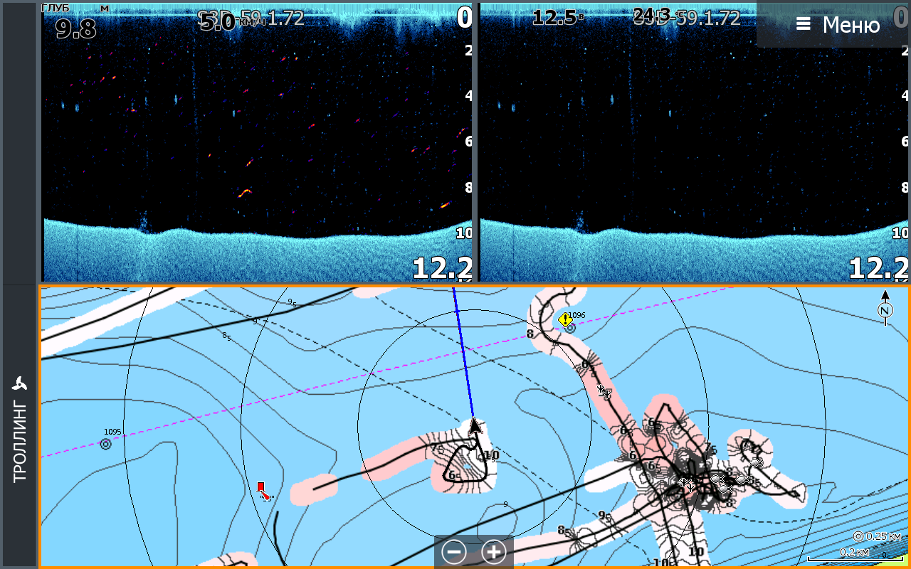 Сонар работает? Перейдите на вкладку эхолот и проверьте работает и определяет глубину?