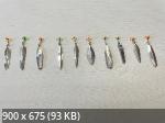 В ассортимент добавлено еще две новинки: 13. Зимняя блесна Кизомбо. Длина 32,38,42 мм. Средний вес от 2,3 до 3,9 грамм. Две коронки. Возможный материал изготовления: мельхиор, нейзильбер, латунь, медь или их сочетание. Цена 300 руб. 14. Зимняя блесна Лепесток. Длина 32,37,40 мм. Средний вес от 2 до 4 грамм. Две коронки. Возможный материал изготовления: мельхиор, нейзильбер, латунь, медь или их сочетание. Цена 300 руб.