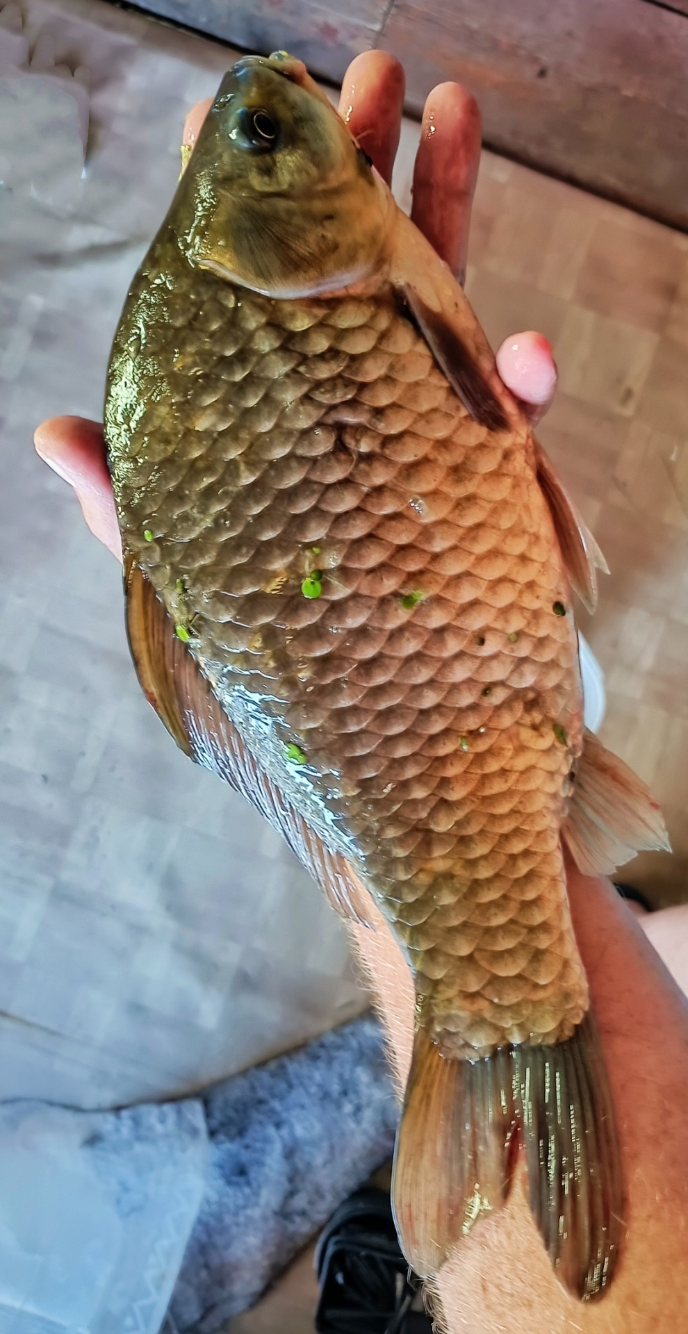 Вссем привет! Сегодня рыбачил на Кинеле, недалеко от впадения в Самарку. Ловил на балансир. С рыбой мягко говоря не очень, зато поймал окуня, цвета кильки в томате. Что это? Я рыбачу более пятидесяти лет, но такой масти не встречал. У кого какие мысли на этот счет? Химоза? Может цвет на фото не очень четко получился, но он реально рыжий. Удачи. Пока пока.