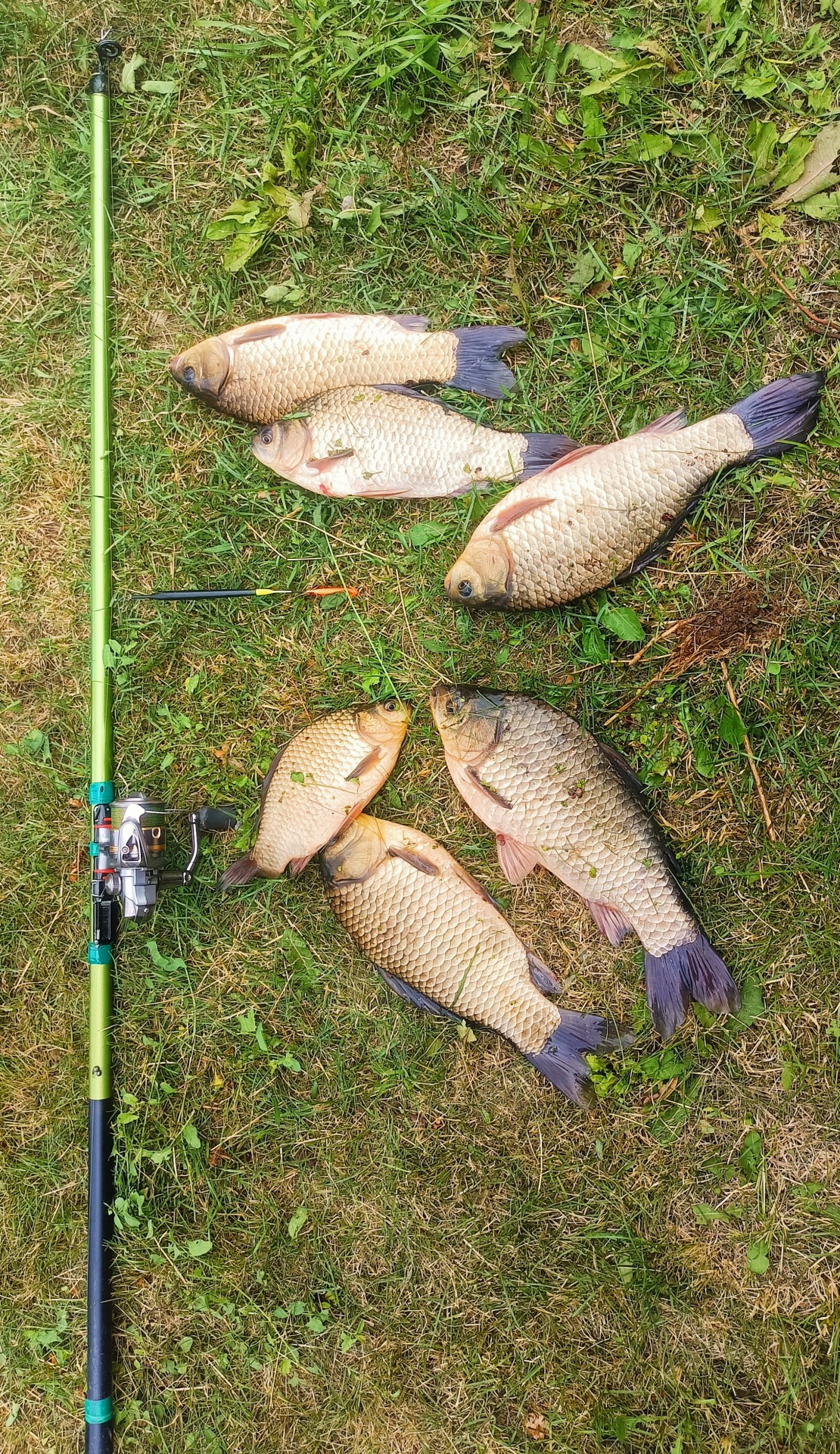 Всем привет. Расскажу про Рыбалку в выходные. Субботу и воскресенье с 6-00 до 9-00 пытался поймать карасей на одном из ширяевских озер. В первый день к девяти часам клев совсем прекратился, а во второй наоборот повеселее стало, но время поджимало, пришлось уходить. Результат довольно таки скромный, суббота четыре штуки, воскресенье шесть. Зато караси славные. самый большой 780 грамм. Вываживать таких на поплавочную удочку сплошное удовольствие. Ловил на перловку. Удачи. Пока пока.