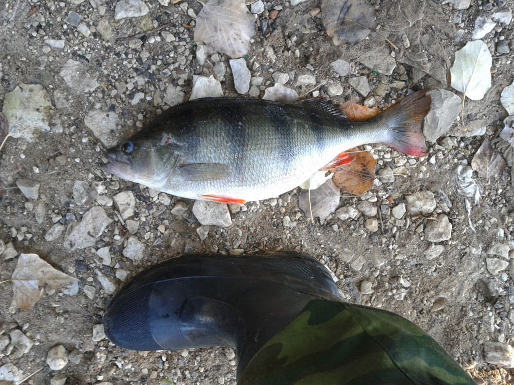 Еще более запоздавший отчет о прошлом воскресенье. Как обычно в выходной, рано утром на берегу, прямо в черте города, накачал лодку и с рассветом вышел на воду. До точки - 15 минут мышечных усилий. Кастмастеры от 5 до 28 гр, глубины 2-14 метров. 2 часа и результат - 6 окунишек с ладонь.... В полдевятого поклевки совсем прекратились. Поднимаю якорь и по слабому ветру двигаю к автомобилю, пробивая кастмастером 28 гр дорогу. Ощущаю 3 слабых потычки и решаю поставить не 28, а 18 грамм и еще раз пройти там же по ветру. Возвращаюсь на место первой поклевки, заброс, и сразу же поклевка на падении и ... новый личный рекорд в окунях.  Старый - 3 одинаковых штуки общим весом 3 кг - держался 15 лет. Этот потянул на 1,5 кг. Всем удачи, завтра туда же...