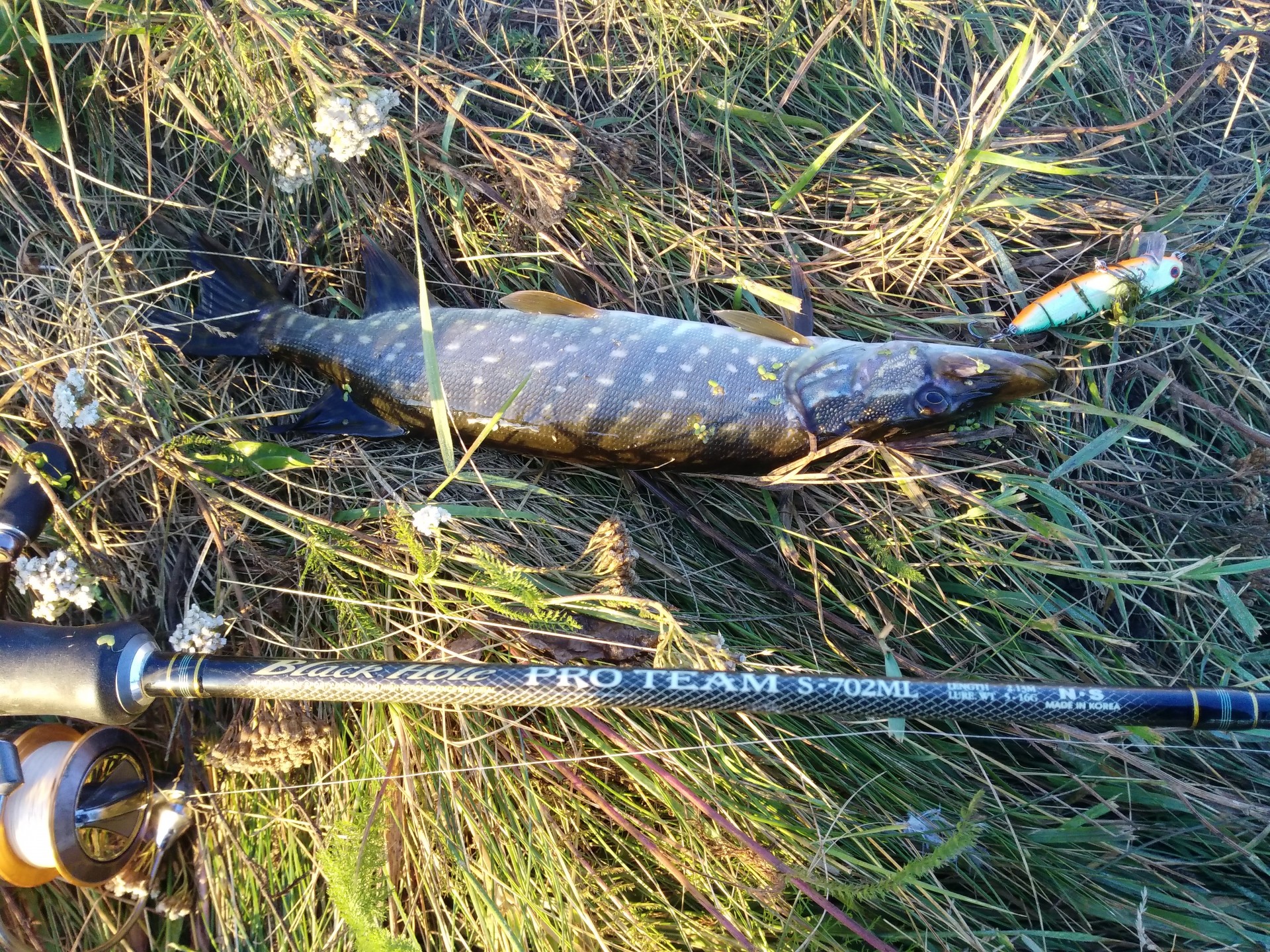 Всем доброго дня! Последний раз ловил в далеком 2015 году.... Соскучился за 2 года без рыбалки. Весь запрет была возможность ловить законно, да то времени нет, то погода не дает. У папы на работе на фермерском хозяйстве пруд, взят в аренду. Директор рыбак заядлый, запустил туда карпа, карася, а три года назад немного щуки. Так вот щука прижилась и весной начала поклевывать. НА прошлых выходных и погода супер, поехал. Пруд небольшой, но интересный, представляет собой затопленный овражек с кустами и деревьями, с другой стороны меляк с травой. Начал ловлю с вертушек, железа на глубине, полный ноль. В траве заметил всплески, глубина до полуметра, копия тини магалона и хамакуру, всегда выручали. Поймал несколько мелких щук, как всегда самая крупная сошла. Наверно и сноровку растерял. Но щука под трешку, была самая обидная, почти вытащив ее, она срезала шнур выше поводка, и ушла. на ультралайт половил еще окуньков и поехал домой. Фото...