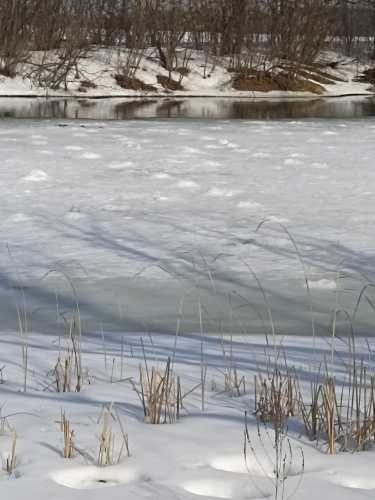 Второй пролет за зиму. Купино. Всего 35 сорожек. Утоплено мизинчиковых стоко (если не поболе). Перепробовал ВСЕ места под деревней (на некоторые не заходил лет 10)...пусто (либо мелочь)...Чел ходил по лункам с камерой...с хвостом желающих "на посмотреть чито и как"..рыб кишит , но жрать не хочет.  . Один вообще курьез: балансирщик забагрил щуку (килошка, мож чутка поболе) за плавник...как он ее заводил в лунку - цирковой номер. Течение размывает лед, после заводинки близ правого бережку 3 см!  . Чувствую, что за крупной сорогой я туда в этом годе не выберусь...У Володи расстройство подвел сорогу (с полкило-его оценка) в лунку, глянул в ее зенки и она ушла (по-английски) без прощания...Он в чувствах к "англичанке" вывалил в лунку ведро каши со жмыхом...и мы уехали домой. ... Вот так . Но день хорош и звонок. Развлекали дворняги в деревне, что хором обсуждали то ли дополнения к бюджету, то ли школьную реформу... Все хорошо, если бы не придурки, что начинали хором курить вейп...уж лучше бы навозом воняли...(дым обычной сигареты переношу спокойно... рад, что лет девять взад бросил курить) ![Смайл класс [smile=klass]](Smileys/default/good.gif) . ... P.S. Вожу с собой алмазный надфиль. Зацепил за лед кЕтайским крючком - точи его, пЫмал пяток окушков больше ладошки за их костяные губы - точи крючёк поновой...