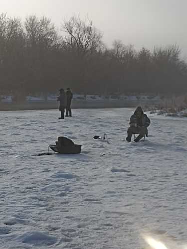 Вчера Купино. Всего полтора десятка сорог. Безмотылка. Народ ловил мельче, но чаще на мотыля и опарыша с кормушками ... Вчера в Купино было тихо в тумане с утра даже деревенские собакины молчали, и на небольшом пространстве сошлись любители зимники, а так же спиннингисты, фидеристы и поплавочники...  Вдалеке Володя , а мое местечко занято открытой водой:  Балансир на фоне спинов:  По левому бережку вдалеке люди стоят со спинами и закидухами (зимник на переднем плане-рискует , под ним ледок см 3-5):  А, с другого берега поплавочник  :  ... По бугоркам лунок, представьте "рыбьи тропы" и количество рыбаков...  ... Видать лед в Купино к следующим выхам ВСЁ...