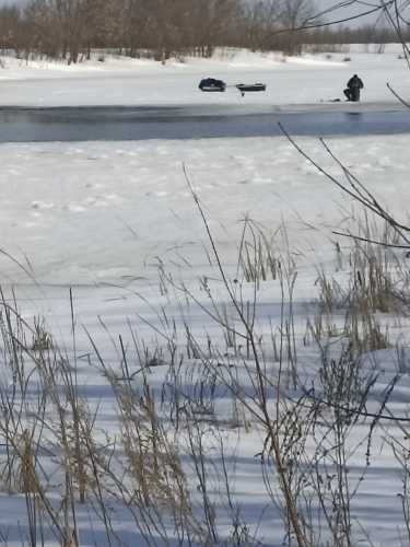 Сёдня Орлова. Умудрился спымать вот такого:  ... Искали-искали...весь угол пересверлили...мой АКБ сдох...думал уже, что и на ушицу не наскребу. Володиным ледобуром (красный китаец) пробил лунок 6 рядом с протокой...и с одной лунки в течении часа (или меньше) 3 кг полосатых:  ... Начавшимся бураном перемело тропы, уезжали последними с мыска после канала...
