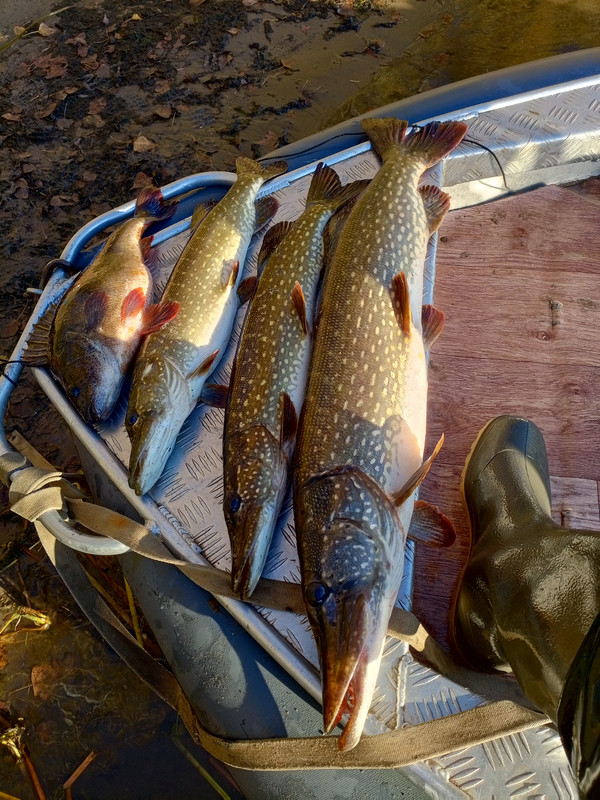 Что с сайтом творится, вчера опять недоступен был. А теперь про рыбалку. Взял на сегодня отгул в честь отпуска (спасибо руководителю за понимание). Выходные проволынил, ветер, погода не та, народу много. Стар стал, когда это раньше останавливало. Вышел из дома, ветер и не слабый, была мысль вернуться, но задушил её в зачатке. Самарка встретила штилем и туманом, температура 0. Пока собирался лодка покрылась инеем, раньше и в минус 5-7 выезжал. Дошёл до точки, включил эхолот и первое разочарование, а рыбы то нет. Минут 10-15 елозил, искал. И на точку точно не встать, GPS не работает. Нашёл маленькую стайку, стоящую вполводы, заякорился и на ней простоял всю рыбалку. Сначала упирался в виброхвосты - ноль, игнор, поставил твистер (вот ведь прижилось название по фирме, приманки которой первые появились у нас). И в 8 часов первый контакт, судачок (900 гр, всё вешал дома) отправился на кукан. Через минут 20 удар и второй в лодке, но штрафник, за борт. Нахлынули воспоминания как раньше ловил здесь закилошников на Сандру ред хэд (был такой, кажется французский силикон) Остался последний из могикан, лет 15 ему, периодически макаю его в воду с нулевым результатом. Поставил полчаса кидал, не "берёть". Очередной заброс, на выбросе, вполводы контакт (ветер выдул дугу из плетенки). Вот когда поблагодарил себя за привычку сразу закрывать дужку катушки после приводнения приманки. Среагировал, подсёк, выбрал дугу шнура и ещё раз подсёк и через несколько минут судак в лодке (1420 гр). Еще по упирался с ней, опять пробовал разные виброхвосты - ноль. Ветер сменился с легкого юго-западного бриза на пронизывающий северо-восточный. Поставил приманку, которая принесла первых двух рыб сегодня и около 11 часов лёгкий контакт, обернувшийся щукой (3850 гр). Норму выполнил и хватит, хотя лукавлю, ещё минут 30 упирался. На этом всё. Всем Удачи