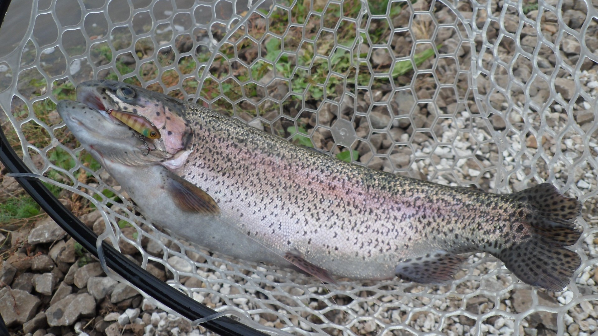 На следующих проводках поклевок нет. Меняю приманку на Forest PAL 3,8гр. Вторая проводка - есть. Форель опять крупная! Когда же последний раз выпускали свежую? На PAL одинарный крючок вообще не имеет бородки. Вываживание затянулось. Неспешно не форсируя рыбу удается завести в подсак. Рыба опять выпрыгивает из подсака, но все заканчивается в пользу рыболова.