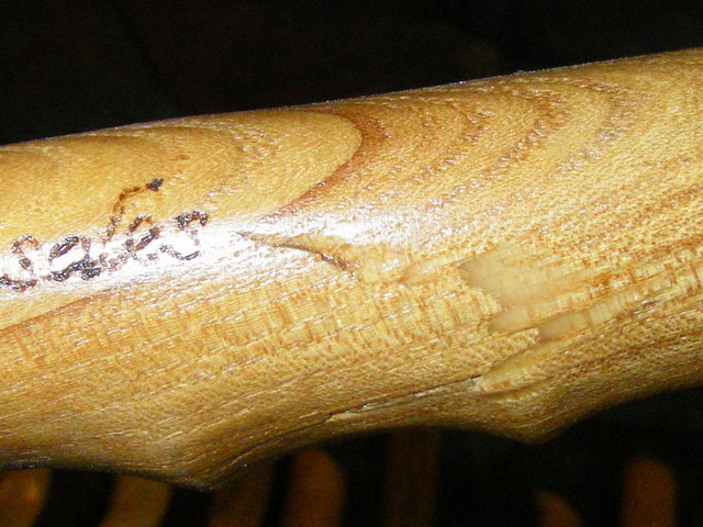 8 - аналогично. Изготовлен из самоваленного ясеня, который позже досох, нож искривился. Клиент получил замену, а этот я выправил вклейкой планки.