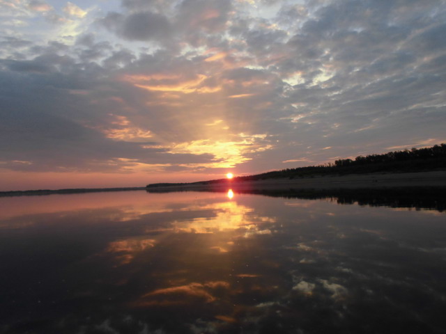 Не добрались сюда и уничтожители поголовья говядины, которые, предлагая двойную цену, убили в России говяжью промышленность, что бы потом кормить нас копеечной (для них) аргентинской буйволятиной, или ещё какими-нить списанными отходами. Где был царь со своими разглагольствованиями о продовольственной безопасности страны?Вскоре начались мели. Задевы дна, срезы шпонок, таскания лодки против течения.
