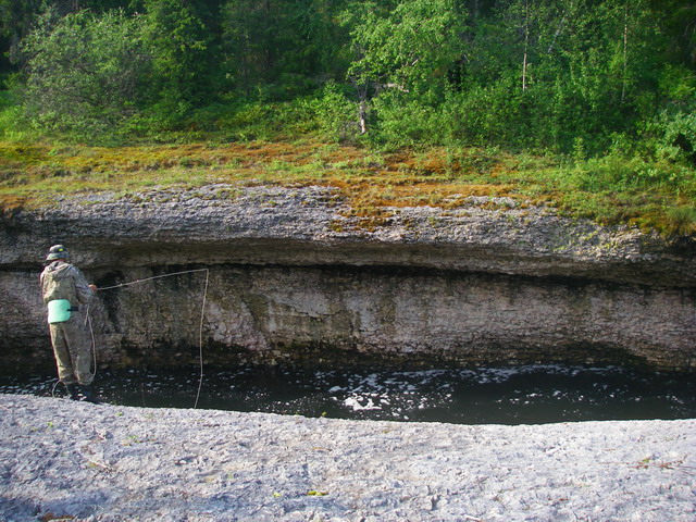 что высадившись на площадку, я даже воду из сапогов не слил, а сразу рыбачить, заприметив хорошее место для заброса. ![смайл спиннинг [smiley=drill2.gif]](Smileys/default/drill2.gif)
