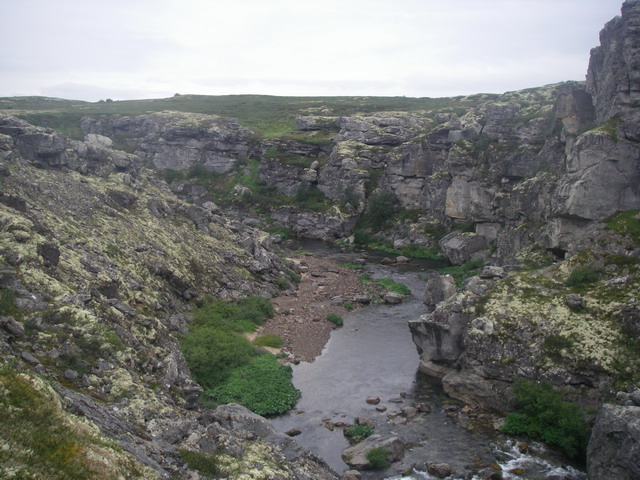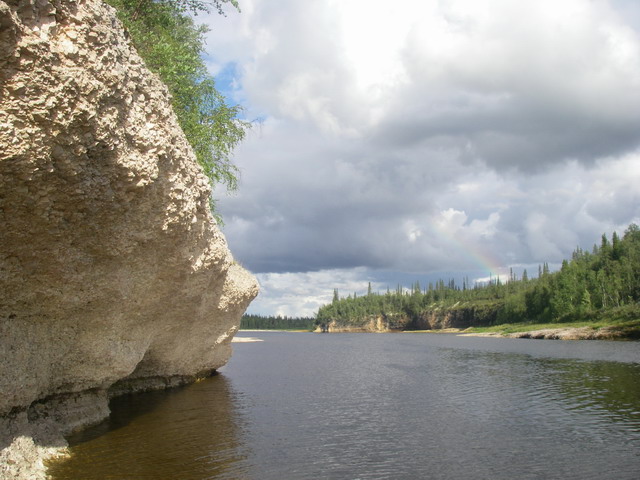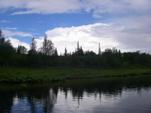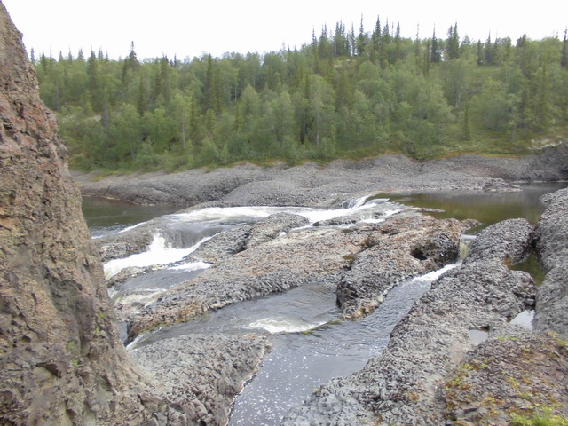 Интересная речка. Десятки километров ивняка с двух сторон, негде причалить, не на чем глазу отдохнуть, и каньоны, скалы, захватывающие дух. Бурные водопады, и почти полностью замершее течение. По берегам тундра, болота, и боры, березняки. Рыба – любая. Возможность сходить на притоки, зачастую совершенно не похожие на маму, или, как мы, через водораздел на совершенно другие реки. Надеюсь, до свидания.