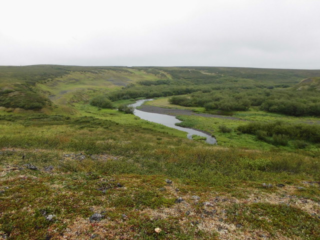 Дугу ты всё равно опишешь, в вертикальной плоскости. При этом выиграешь какую-то сотню метров, затратив на это кучу усилий в сравнении с чуть более длинной, но удобной дорогой по тропке вдоль реки.Эти верховьях очень мало хожены. Народ забирается в эти края по другому притоку. А места интересные.