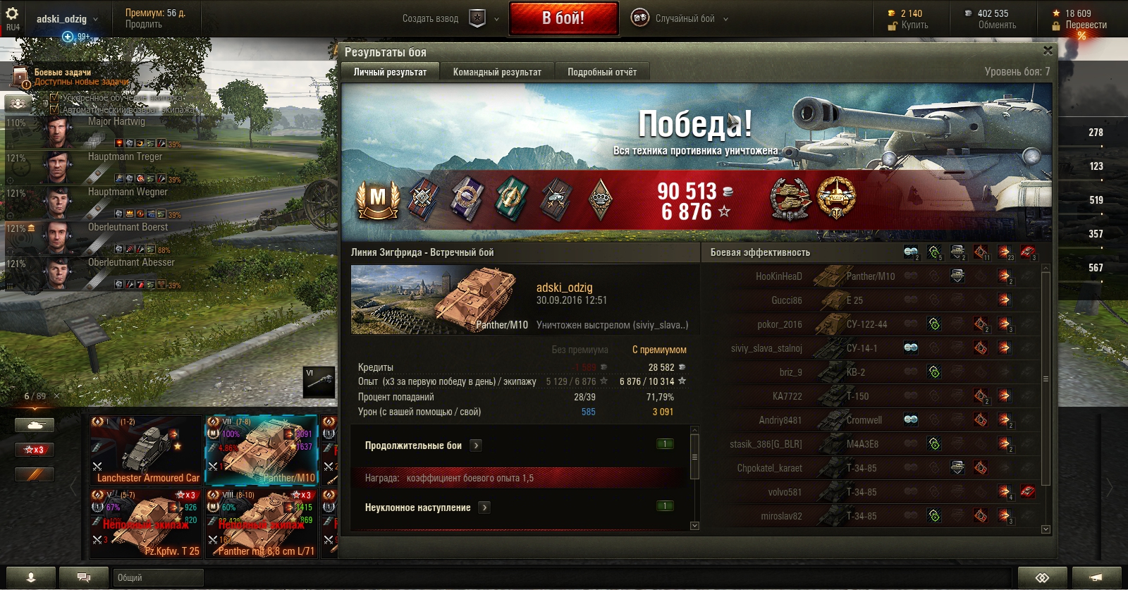 ЗЫ. Обратите внимание на первого номера в команде противника! У него тоже первый бой, списывались во время игры, он тоже был удивлен машиной.