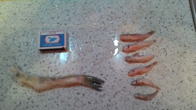 19 пробовал убедиться, что злейший враг налима и самая лучшая наживка - ерш. Но то ли ерш мороженный ему не пришелся по вкусу, то ли тропу не нащупал.( Туда , где народ массово кучковался, не лез).Увы, не убедился. Коллега по рыбалке сообщил что там же, в то же время( с 17 до 21) троих поднял. Вчера взял карасика, бур наперевес - налим, берегись! Сменил место.Решил быть ближе к народу, но и в толпу лезть не хотелось. На второй лунке в 17.45 - повис. Начало положено. Небольшой, на кг примерно, НО первый! Сейчас попрет! Но что-то не поперло.Ни в этой лунке, ни рядом.Пришлось попереться самому. до 20 гулял, бурил, искал, народ время от времени полавливал, а я нет. Решил найти ТУ Самую Лунку. К 20.30 нашел её. Мокал, мокал - пусто.. Народ стал домой уходить, думаю :а может и мне пора к горячей батарее, чаю с лимоном, раз уходят - значит, не только у меня не клюет. Ладно, крайняя попытка - и домой! И тут - ударчик, через секунду -УДАР! Есть! (Домашнее взвешивание показало -2.185). В 21.50. Мысль о домашнем уюте куда-то испарилась. Вернулась она в 22 , когда часовой купание карасика успехом не увенчалось. Довольный, как удав, поехал домой. Интересно, вскрытие показало, желудки полные. Впечатлил размер остатков судачка из желудка большенького. Сантиметров 20 был в живом виду! Меньшенький питался окунишками. Оба с икрой.