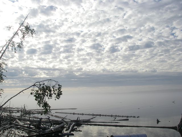 Спали у Виктора в избе, за что я расчистил причал максимально возможно. Хотя, Иваныч однозначно заявлял, что Сизифов труд, и при смене ветров дров нанесёт столько же. Ничё, моё дело сделать.В тумане моторка медленно прошла вдоль дальнего берега. Это здесь редкость, все свои, знакомые, но, кто это был, мы позднее так и не выяснили, за давностью дней.