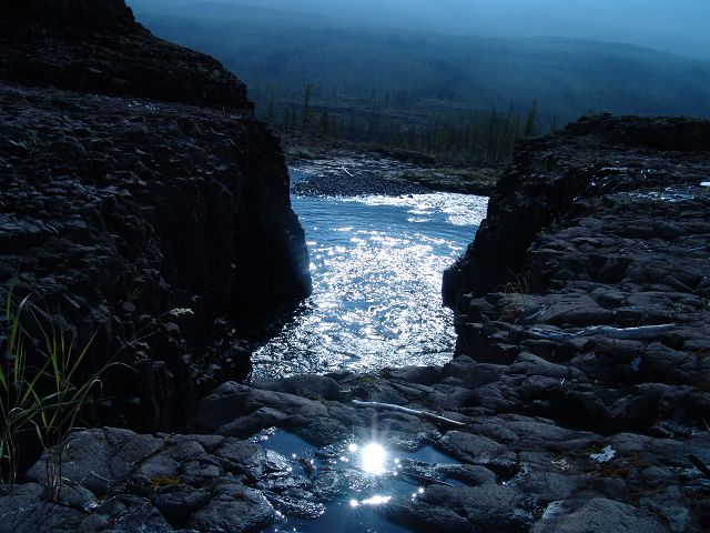 Воды мало, не иначе, по весне там всё бурлит невообразимо.Как верно заметила одна из путешественниц, там в небе или радуга, или северное сияние.
