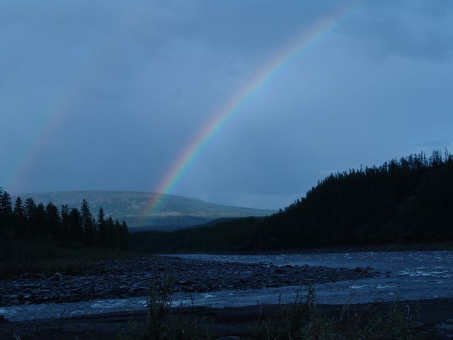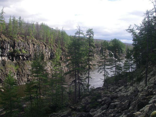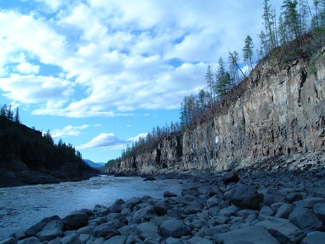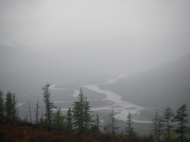 Первая "ночёвка" после старта из посёлка. Пройдена бОльшая часть водохранилища. Под двести кэмэ в длину, всё оно завалено валежником лиственицы, стволы кочуют по воде взад-вперёд, берега завалены абсолютно везде. Что бы причалить, надо поорудовать шестом, распихать хоть что-то, что бы приблизиться к суше и можно было соскочить на отмель, продолжить ворочать брёвна.