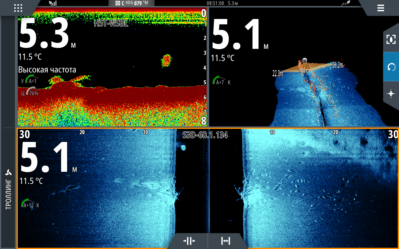 И несколько примеров AI и SS3D. Качество экранов HDS Live стало настолько высоким, что по настоящему оценить скриншоты можно только на самом приборе. Как минимум рекомендую скачать скриншоты по ссылке, а еще лучше посмотреть их на экране HDS Live. По ссылке скриншотов больше чем в публикации. В названии файла датчик, который использовался.