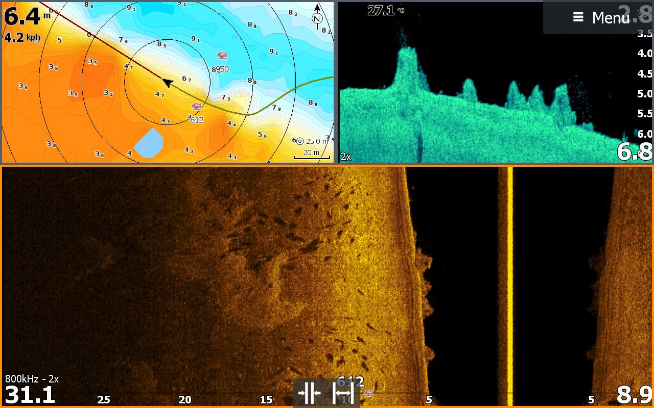 Рыбу нашли на первом же месте,где в прошлом сезоне ловили судака до 3,5 кг,ну и собственно куда нас все это время и тянуло.Но тут что пошло не так.На первой же проводке у Влада на Фат 6,8 клюет и не подсекается судак.Следом у меня тоже на первой проводке судак атакует изик 8.И опять мимо Вообще ничего не понимаем что происходит.Делаем еще по забросу и опять 2 холостых удара.Думаем надо что то делать. Переставляемся рядом по хорошим силуэтам в эхолоте,но опять получили по 2-е не результативных поклевки.Беда какая то,и что с этим делать не знаем.Такого еще не было 8 поклевок и ни одного судака.Но это еще не все. .