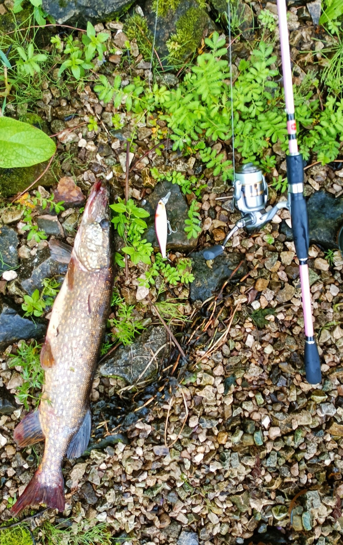 Ну а вечером на Волгу. Некоторые называют судаков напильниками, там последнее время ловятся только надфили. И вчера на джиг только редкие пощипывания. Решил попробовать поймать щуку, прицепил воблер и пошел по берегу твичить. Клюнула лишь одна 1,2 кг. и пара окуньков.
