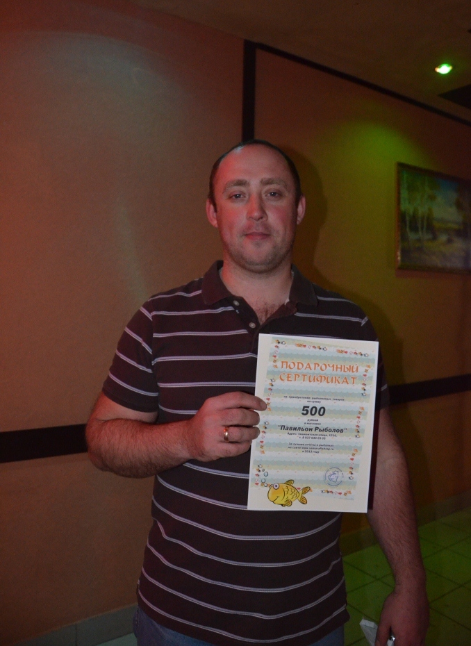 Магазину "Павильон рыболов"(Подарочные сертификаты на приобретение рыболовных товаров)