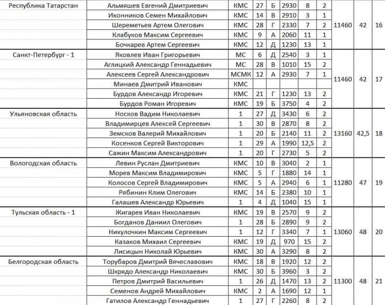 Смотри внимательно https://minsport.gov.ru/sport/high-sport/edinaya-vserossiyska/31598/Ловля донной удочкой Мужчины, женщины 1-3 4-7 50 50
