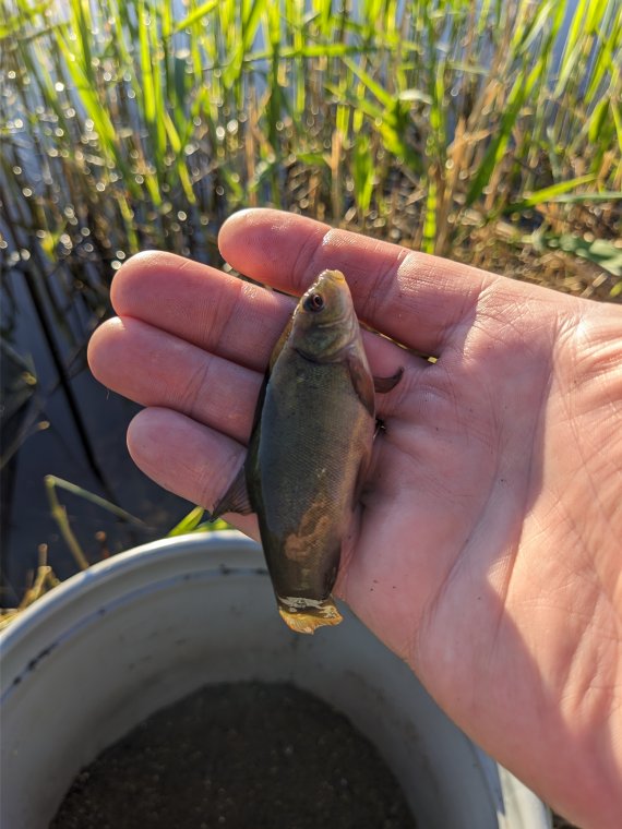 ?. Точку выбрал под камышом на противоположном берегу. Глубина не большая, порядка 50 см. Поводок поставил 25 см. Насадка червь дендробена. Периодически диповал ароматизатором Allvega Essence. Карась ловился с небольшими паузами в течении всего времени, которое я провёл на водоёме. К 11 часам стало совсем жарко и я начал собираться домой. Рыбку поймал, воздухом подышал, зачем собственно и ехал. Всем НХНЧ.