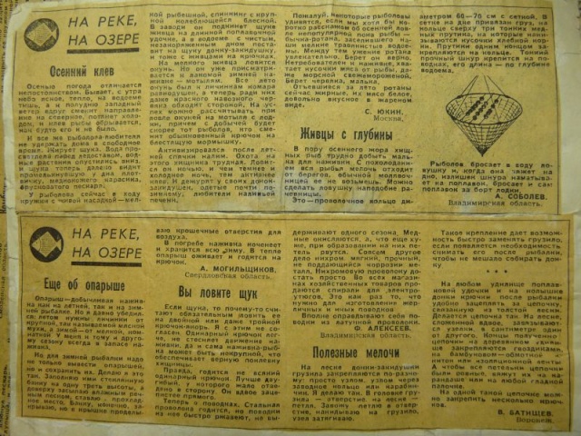 Действительно каждый четверг или среду в Сельской Жизни выходила рубрика На реке На озере. И я такие вырезки клеил в тетрадку. Иногда достаю, детство вспоминаю. Тоже могу что-то выложить.