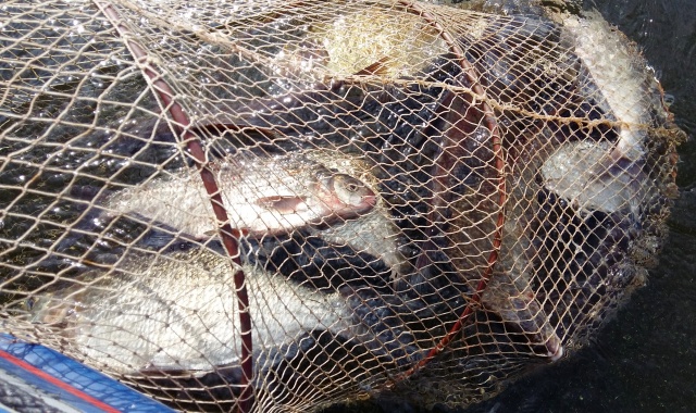 пока пытался ловить, вокруг крутился рыбак, ловил на удочку, на карасика(вроде), в окошках камыша... При мне поймал два, штук 6 точно...