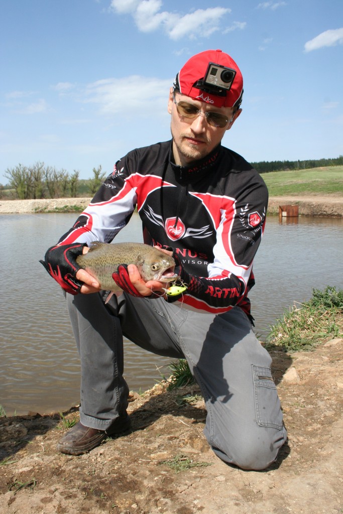 Первый ушел от нуля Слава. Форель поймана на крэнк.