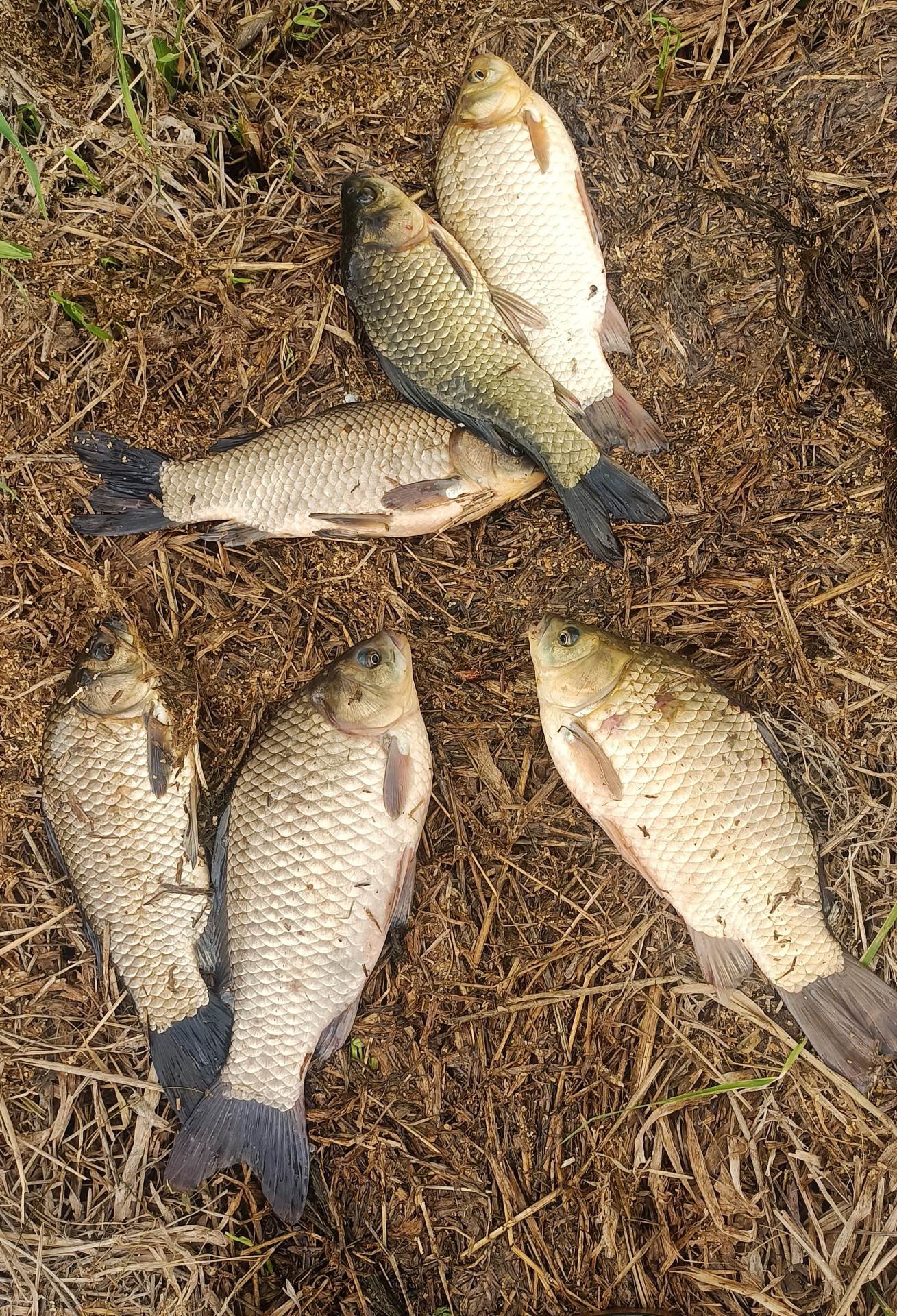 Всем привет. Расскажу про Рыбалку в выходные. Субботу и воскресенье с 6-00 до 9-00 пытался поймать карасей на одном из ширяевских озер. В первый день к девяти часам клев совсем прекратился, а во второй наоборот повеселее стало, но время поджимало, пришлось уходить. Результат довольно таки скромный, суббота четыре штуки, воскресенье шесть. Зато караси славные. самый большой 780 грамм. Вываживать таких на поплавочную удочку сплошное удовольствие. Ловил на перловку. Удачи. Пока пока.