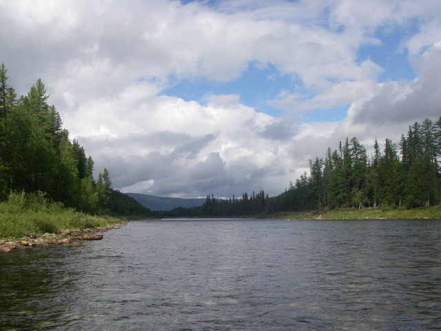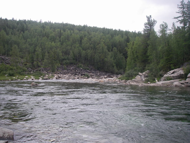 Особых ям, где могли бы щупаки ныкаться, пока не наблюдается. Скорее всего, на этом участке реки должно быть много мелкого хариуса. Иду, долгое время не беспокоя спиннинг.
