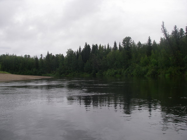 Река стала довольно скучна, чисто лесная речка, тёмное дно, перекатов нет