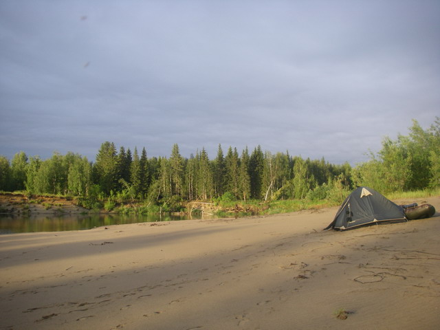 И вдруг, в 23-00 небо заволокло, и закапало. Не всё коту масленица, есть в этом меню и мокрые блины. Быстро палатку на берег, отбой.