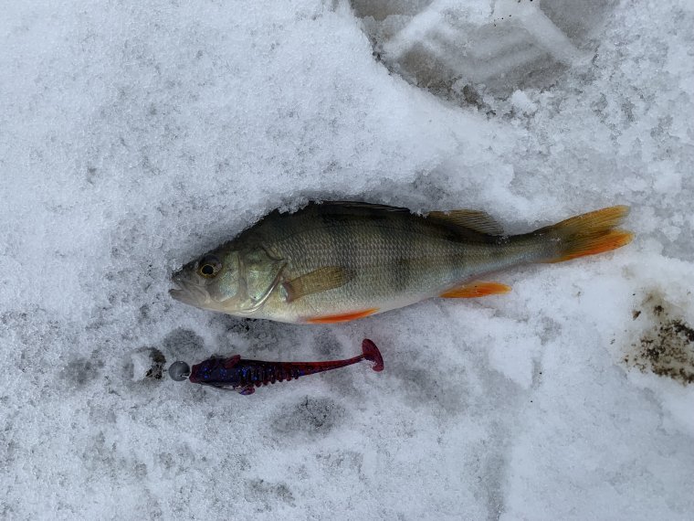 Сегодня решил прогуляться со спиннингом на русло 22-го партсъезда, приехал в обед, на русле вовсю уже орудовали отвесники, периодически помахивая руками и вытаскивая некрупного берша на тюльку, для тамошних мест такой размер-норма. Короче, расчехлил инструмент и стал перебирать силикон не крупного размера, который неплохо отработал этой осенью, уж, что я только не мокал в воду, каких только цветов не предлагал, какие только проводки не изображал....))) Берш-собака брать напрочь отказывался. Потом пошел на озеро вдоль вырытой протоки от русла и там увидел и реализовал несколько окуневых поклевок. Ладошечный окунь заглотил силикон вместе с грузом-размером в половину себя и также удачно его выплюнул оказавшись на берегу, второй позарился на приманку поменьше, потом еще кого-то не крупного чуть протащил и на этом все. Окунь пассивен, при вываживании сопротивляется слабо, при отпускании уплывает неспеша, но чтобы пассивный окунь сожрал такую приманку, я удивлен. Парадокс! Думаю сезон открытой воды 2022 закрыл, воздухом подышал, чаю попил, в принципе не за рыбой же шел...