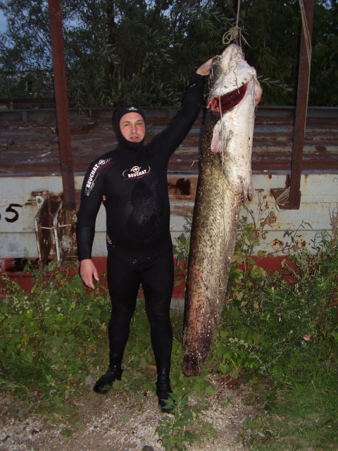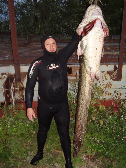 Сегодня ночью сом 45 кг ,глубина 8 метров,выстрел в голову и после этого таскал меня и лодку 25 минут, погнул стрелу зараза