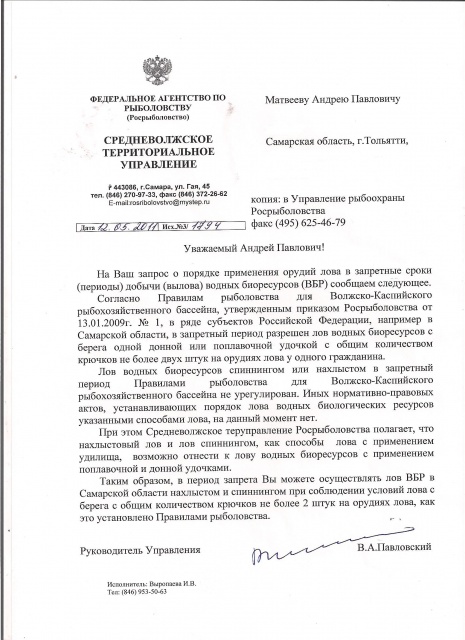 Я неделю назад написал в Росрыболовство по поводу нахлыста,спининга и сроков запрета,но пока тишина. Автор письма из Казани ждал ответа почти месяц.