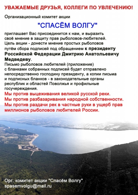 Акция инициирована гуппой рыболовов-любителей.Если пройдёте по ссылке увидете подробности. Я в числе тех, кто инициировал акцию.