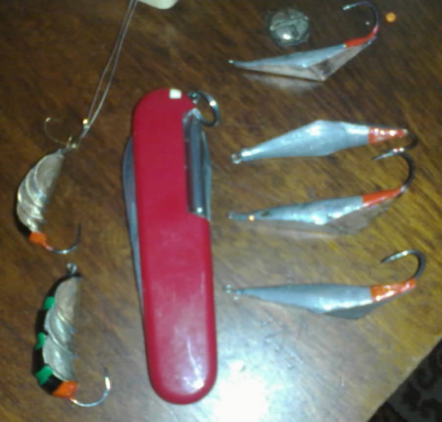 Увлекся донным блеснением, вот паяю маненько. Справа блесны "стелс", Астанов их выдумал. Правда не совсем понятно, чем ласточчкин хвост от них отличается, видимо углом и формой верхней поверхности. Сегодня испытывал, поймал окуня гр на 500, взял блесну. После еще с ладошку, уже на крючек. Но клевало мерзко сегодня. Астанов, это дядька, у которого брат Щербаков идеи тырит. Ну а слева мои извращения на тему "гондурас". Мелкий из 4-х копеечек, поболе из двушки и двух десюнчиков советских. Завтра испытывать буду, мелкий привязал уже. Паять геморно из денюшек, но уж больно на сегменты рачка похоже