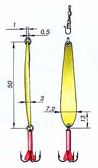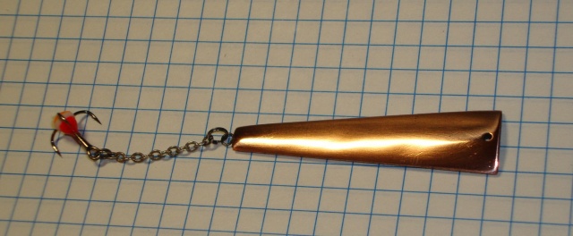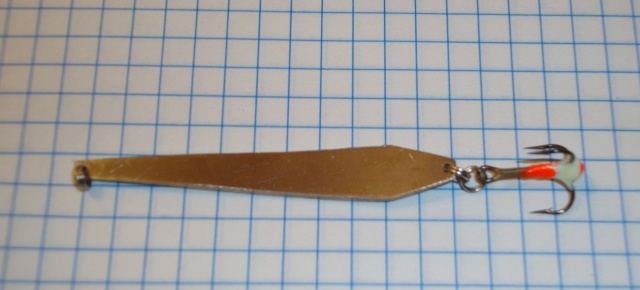 ну размер граней вроде видно..блесна с тройником 55мм длина и 8мм ширина в самой широкой части