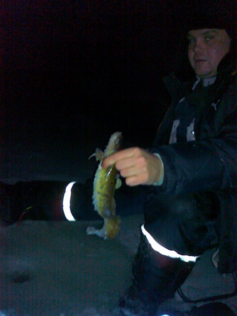 Сегодня с другом ловили бородатого с 5 до 9 утра.Он любитель "активного" поиска -пробурил не меньше тридцати лунок.Я же сделал дырок пять.Результат один-по одной нереализованной поклевке(слегка поджал балду ко дну) Интересная вещь - за день-два до снегопада мы ловили по 3-4 налима за вечер.Сейчас же он практически не клюет.