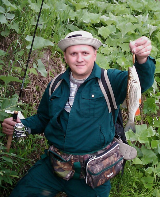 Подходит гамбург и хвалится очередным трофеем гр. на 400-500. Завидую! Продолжаю упорно полоскать юзурика! У меня ис под носа вытаскивает нового красавчика. У меня черные мысли! Глаза наливаются, кажется покажи счас красную тряпку, забодаю! И вот он миг счастья! Удар! Палка согнулась в трипогибели! Господи только бы крючки не подвели...уж дюже они неказистые...и вот в руках красавец...пусть не великан, но для первого головля на воблернолайтовый спининг очень даже ничего...фотосесия и красавец с жарким поцелуем в лобик отправляется восвояси!