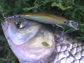Короче, при первом же забросе на катушке непонятно откуда образовалась борода. Распутывал я ее минут наверное 5, не меньше. Ну всё, распутал, начал сматывать леску, а тут оказалось, что она уже живет своей жизнью, и по видимому не собирается в родной дом - наматываться на катушку! Тут же в голове вспомнилась статья из "РСН", про то как голавль тонущие воблеры глотает! Правда в моем случае это оказался суспендер! Очередной 300 граммовый рыбий отпрыск после воздушного путешествия отправляется в родную стихию.