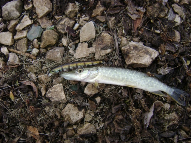 Поимел сход крупной щуки на мелкий судачий твистер, после чего решил поюзать 7-дюймовый виброхвост. На него благополучно клюнул 400-граммовй шнурок.